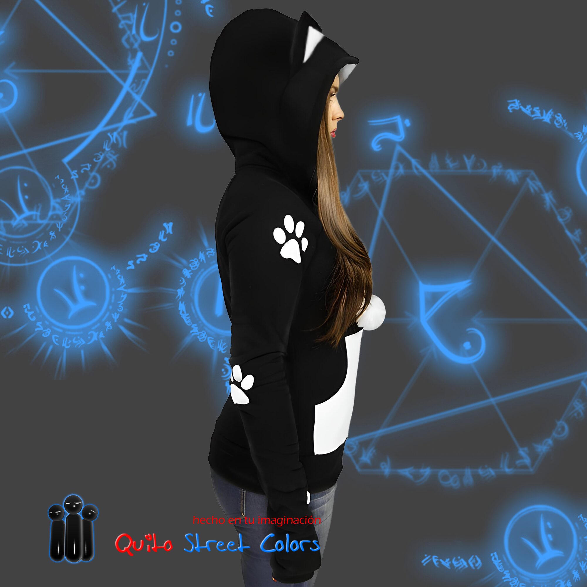 Hoodie Neko Blanco y Negro