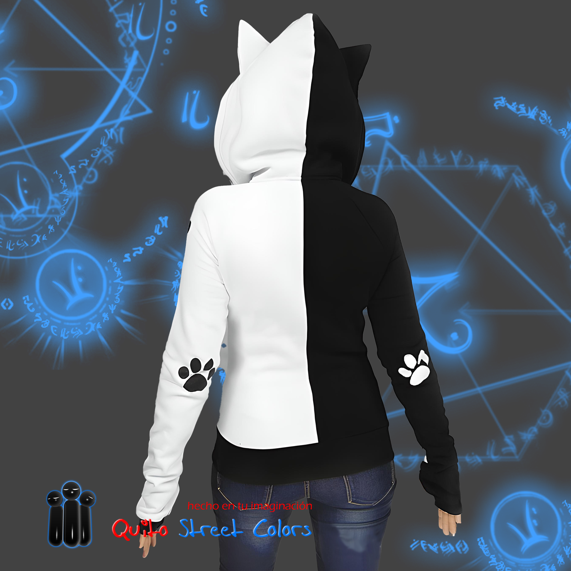 Hoodie Neko Blanco y Negro
